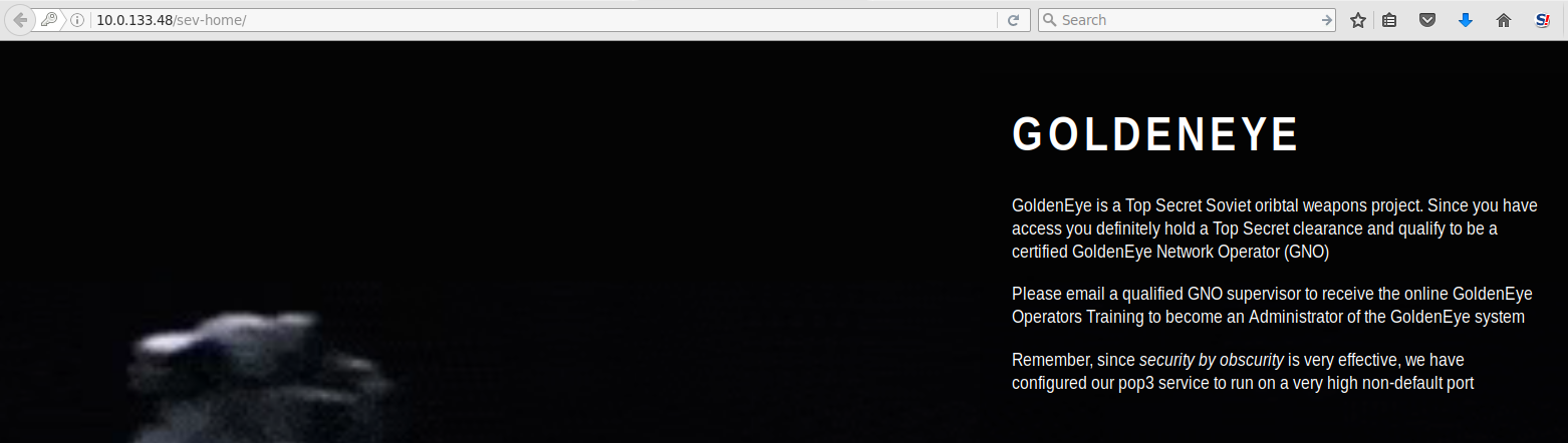 IP address of GoldenEye Virtual Machine: 10.0.133.48